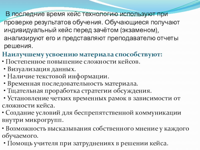 Слайд 23 В последние время кейс технологию используют при проверке результатов обучения.