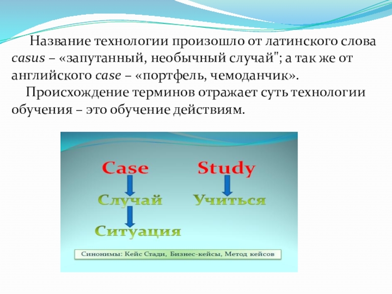 Слайд 6 Название технологии произошло от латинского слова casus –