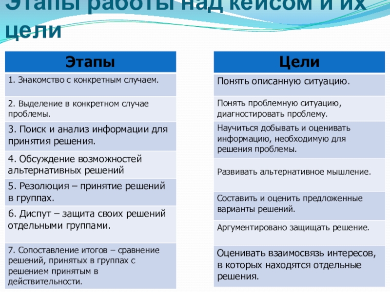 5 этап — решение кейса — предложение одного или нескольких вариантов последовательности действий.