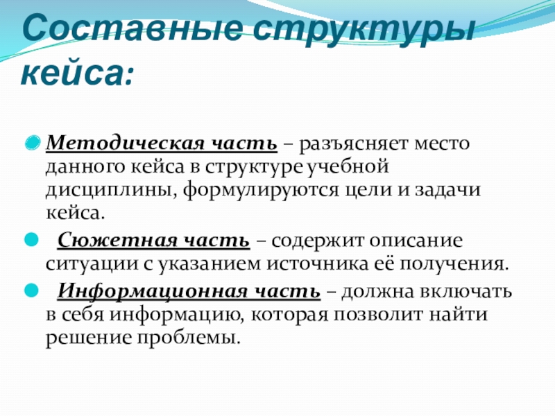 структуре учебной дисциплины, формулируются цели и задачи кейса.