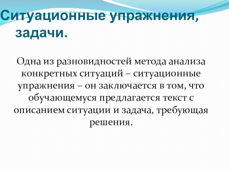 Желательно, чтобы конкретная ситуация не подводила к «единственно верному решению». Ситуация должна обеспечить выход на несколько возможных решений.