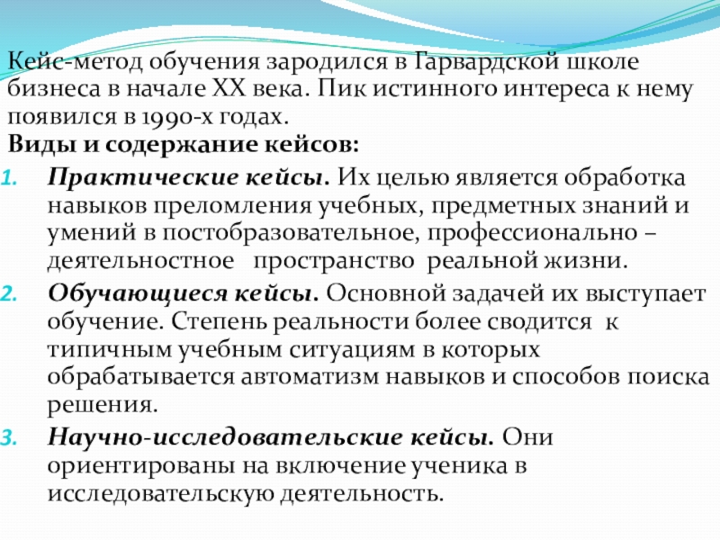 Слайд 7Кейс-метод обучения зародился в Гарвардской школе бизнеса в начале XX века.
