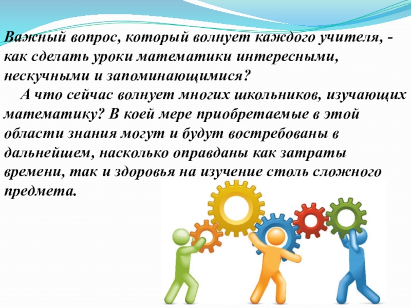 Слайд 3Важный вопрос, который волнует каждого учителя, - как сделать уроки математики