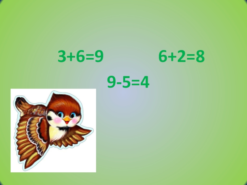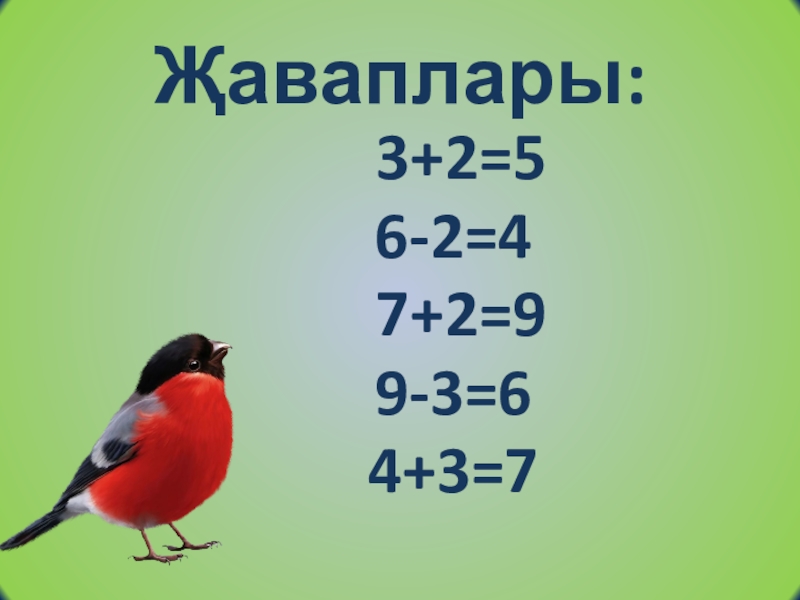 Җаваплары:    3+2=5    6-2=4    7+2=9    9-3=6