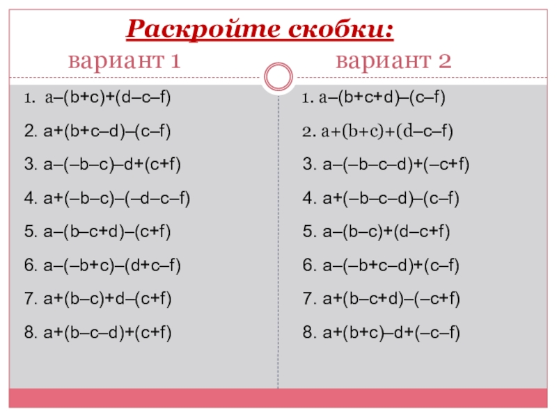 4. a+(‒b‒c)‒(‒d‒c‒f)