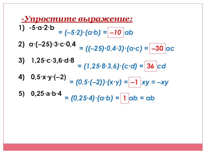 = (0,5∙(‒2))∙(x∙y) = ‒1 xy = ‒xy