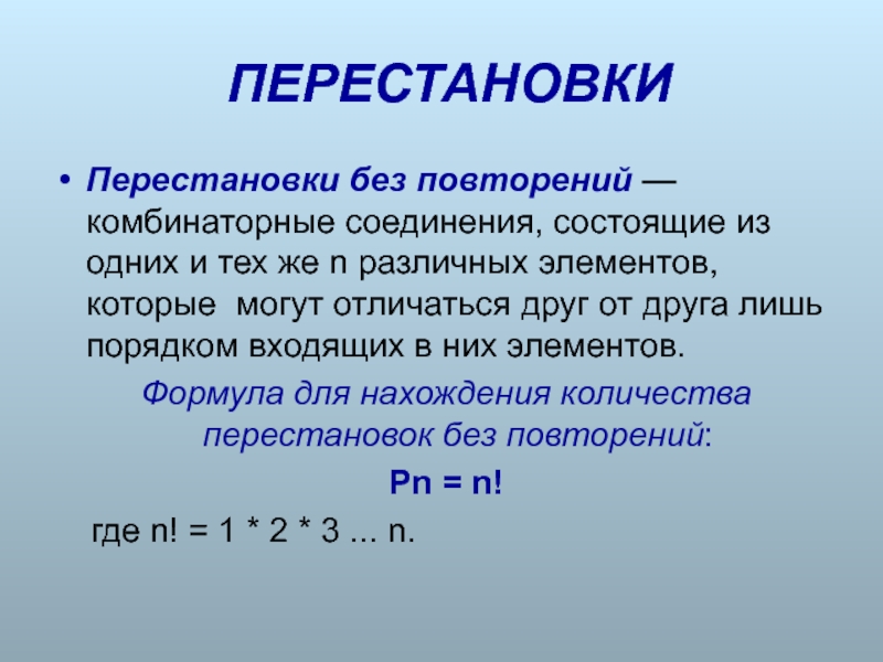 Перестановки без повторений — комбинаторные соединения, состоящие из одних и