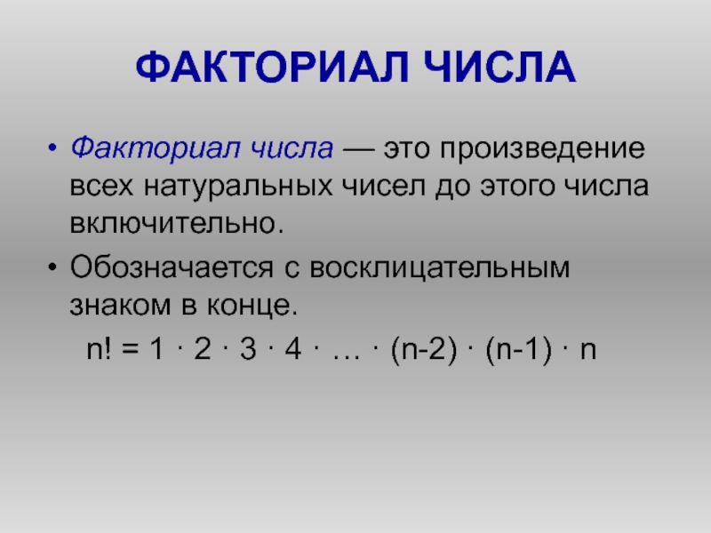 Слайд 28ФАКТОРИАЛ ЧИСЛА
