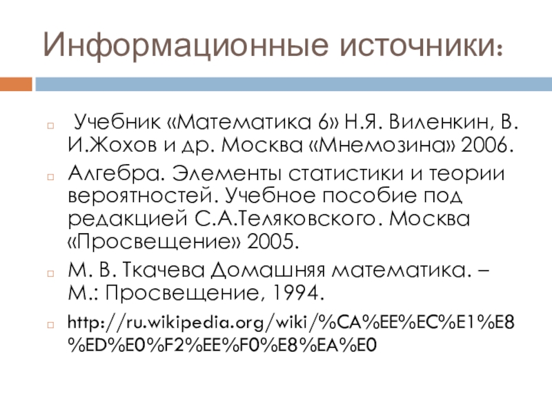 Учебник «Математика 6» Н.Я. Виленкин, В.И.Жохов и др. Москва