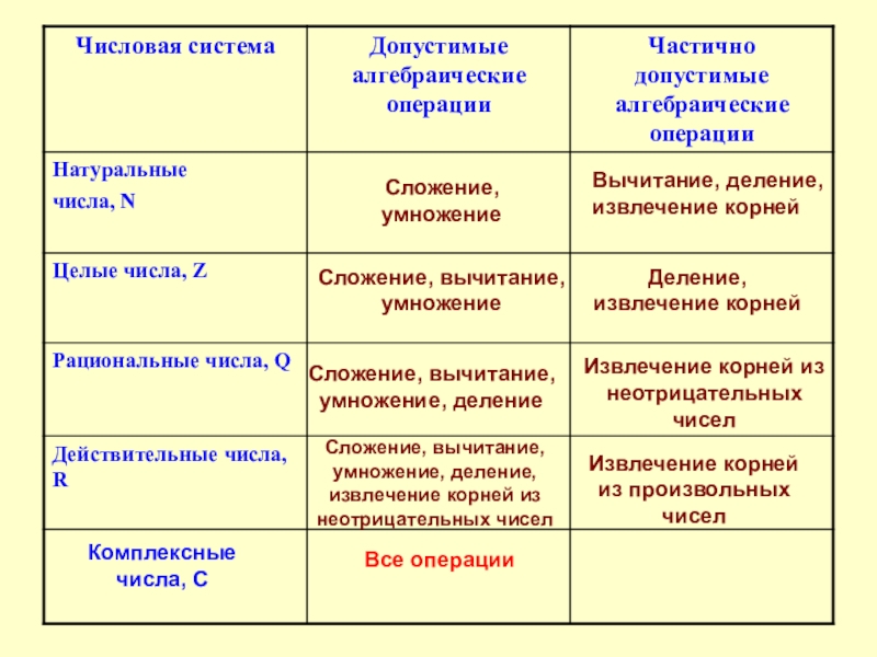 Сложение, вычитание, умножение, деление, извлечение корней из неотрицательных чисел