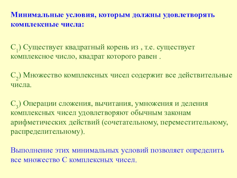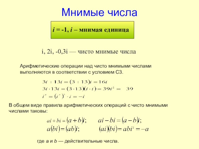 Арифметические операции над чисто мнимыми числами выполняются в соответствии с условием С3.