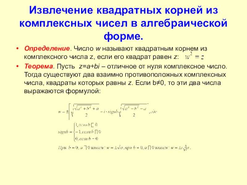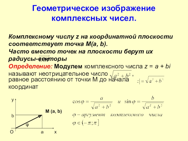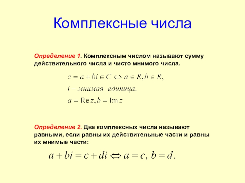 Определение 2. Два комплексных числа называют равными, если равны их действительные части и равны их мнимые части: