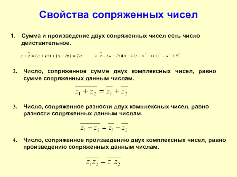 Из всех комплексных чисел действительные числа (и только они) равны своим сопряженным числам.