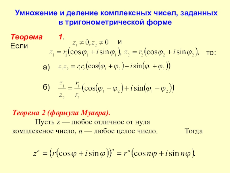 Пусть z — любое отличное от нуля комплексное число, п — любое целое число. Тогда
