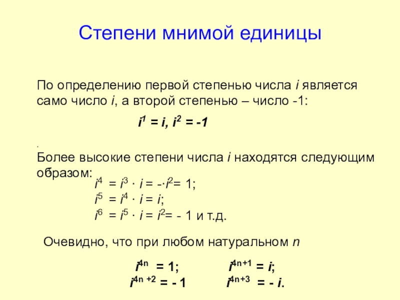 Более высокие степени числа i находятся следующим образом: