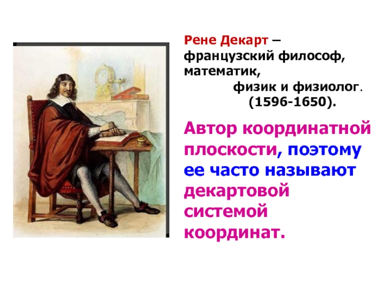 Автор координатной плоскости, поэтому ее часто называют декартовой системой координат.
