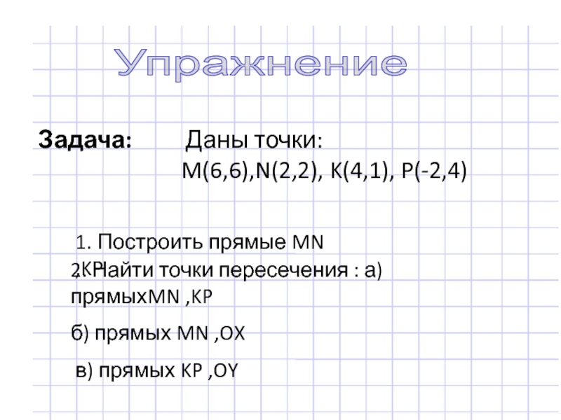 2. Найти точки пересечения : а)прямыхMN ,KP