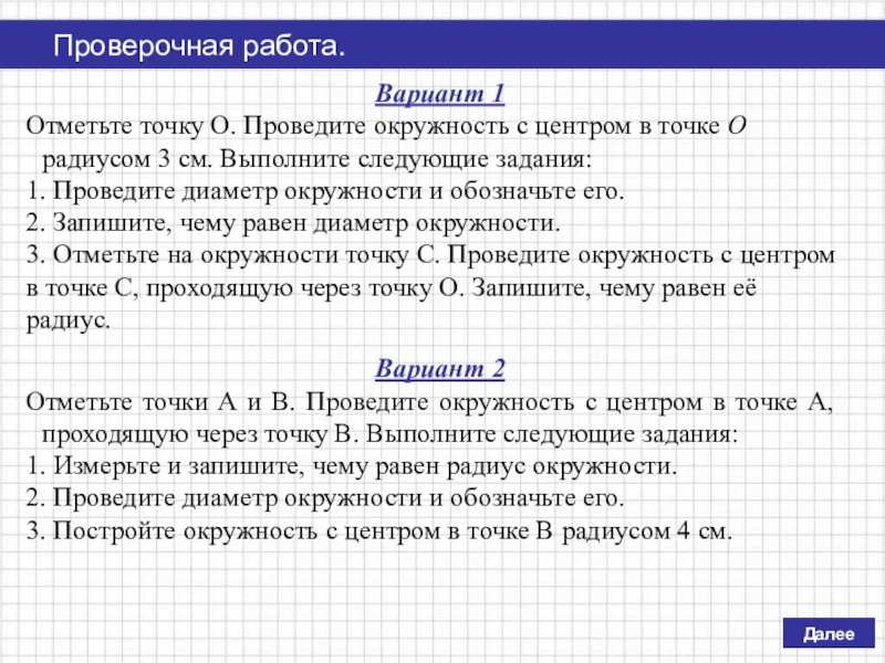 1. Измерьте и запишите, чему равен радиус окружности.