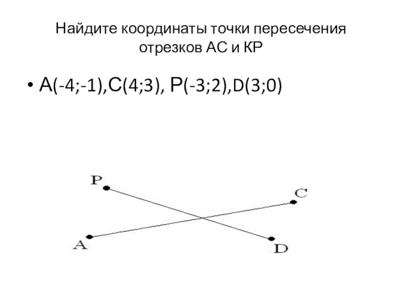 Слайд 5Найдите координаты точки пересечения отрезков АС и КР