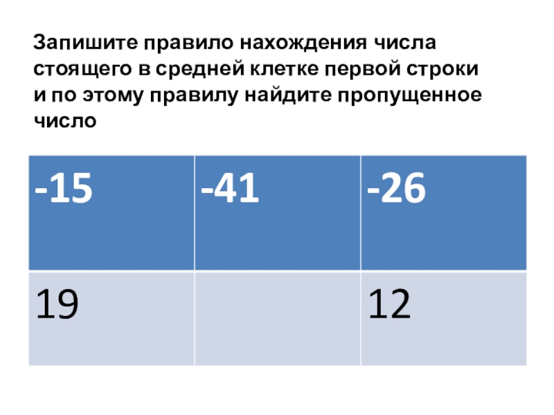 Слайд 4 Запишите правило нахождения числа стоящего в средней клетке первой строки и по