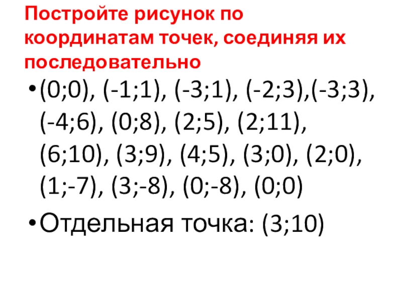 Слайд 8Постройте рисунок по координатам точек, соединяя их последовательно