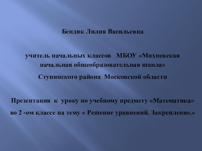 во 2 -ом классе на тему « Решение уравнений. Закрепление.»