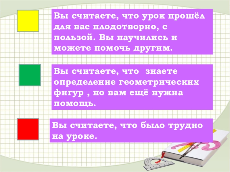Вы считаете, что урок прошёл для вас плодотворно, с пользой. Вы научились и можете помочь другим.