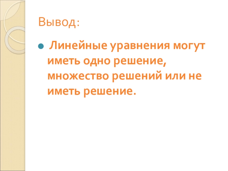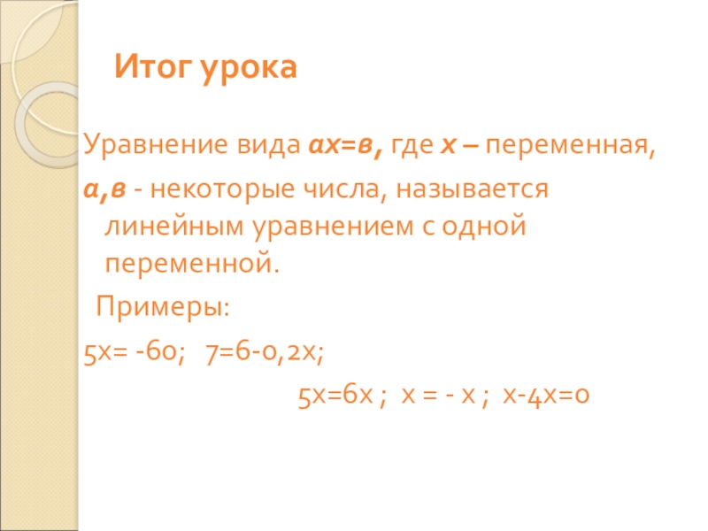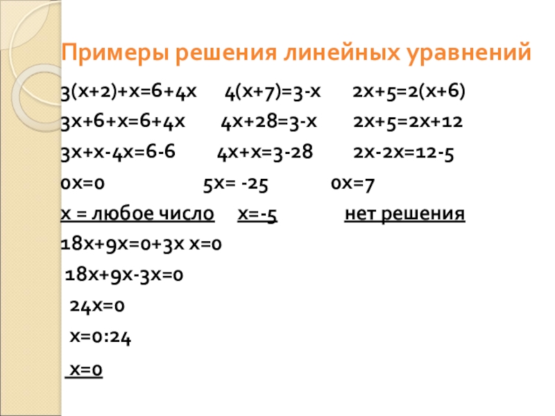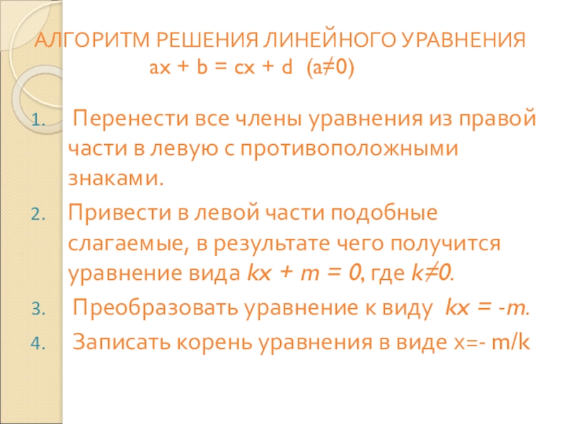 Привести в левой части подобные слагаемые, в результате чего получится уравнение вида kx + m = 0, где k≠0.