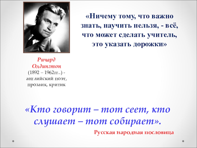 «Кто говорит – тот сеет, кто слушает – тот собирает».