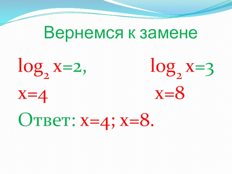 Вернемся к замене log2 x=2,       log2 x=3х=4
