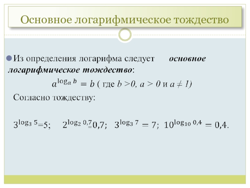 x = alogax , где x > 0 и a ≠ 1, b > 0 и b ≠ 1 .