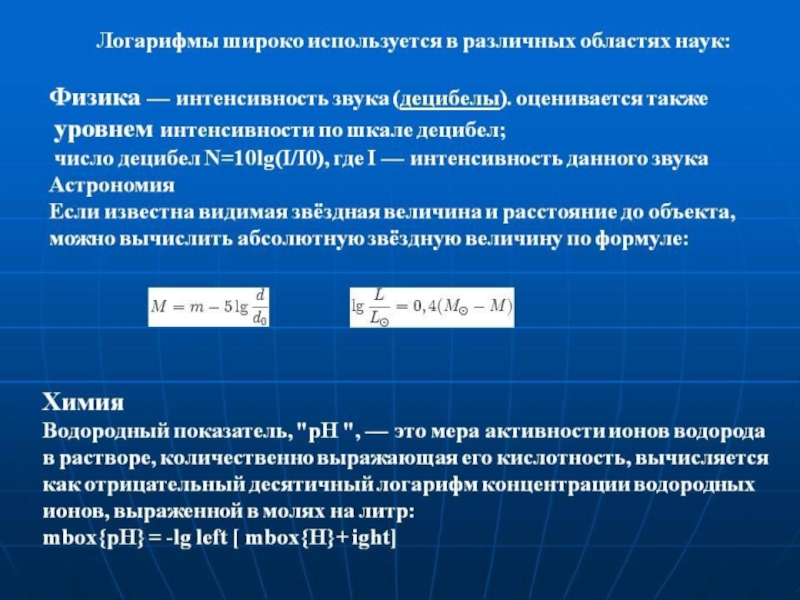 основания берется число 10, и натуральный логарифм, когда в качестве основания берется число