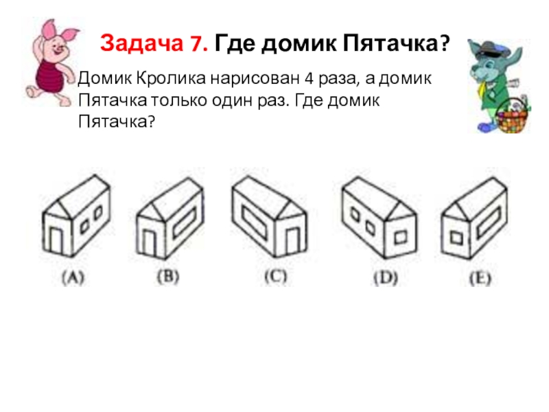 Итак, у Кролика четыре домика: (А), (С),(D) и (Е), а (В) - домик Пятачка.