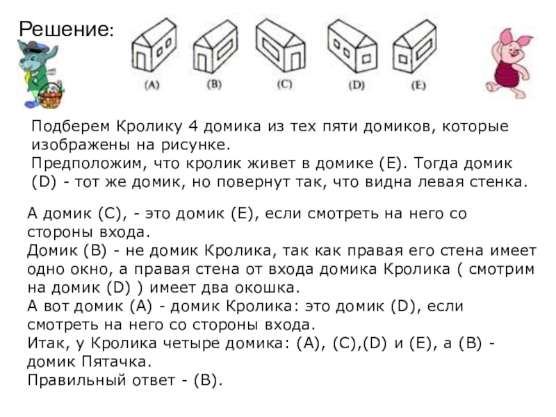 Домик (В) - не домик Кролика, так как правая его стена имеет одно окно, а правая стена от входа домика Кролика ( смотрим на домик (D) ) имеет два окошка.