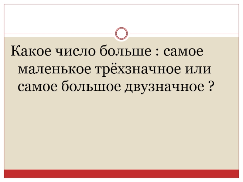 Какое число больше : самое маленькое трёхзначное или самое большое двузначное ?   100 > 99