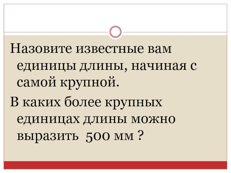 Назовите известные вам единицы длины, начиная с самой крупной.В каких более крупных единицах длины можно выразить 500