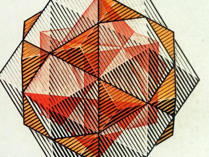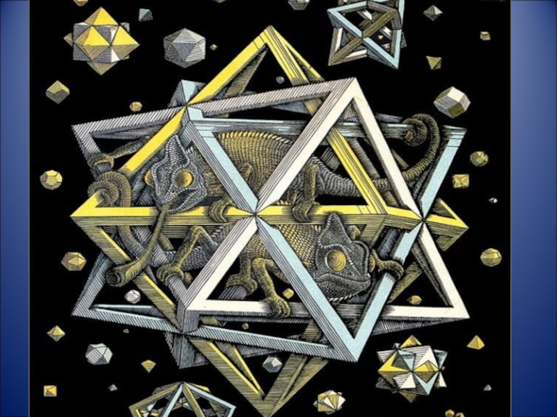 На гравюре «Четыре тела» Эшер изобразил пересечение основных правильных многогранников.