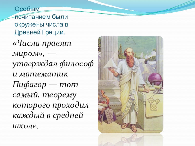 Слайд 5Особым почитанием были окружены числа в Древней Греции.