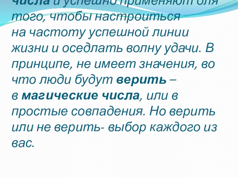 Слайд 32Люди верят в магические числа и успешно применяют для того, чтобы настроиться на частоту