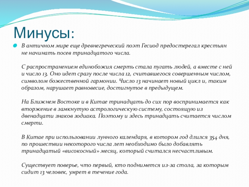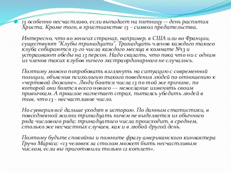 Слайд 2813 особенно несчастливо, если выпадает на пятницу -- день распятия Христа.