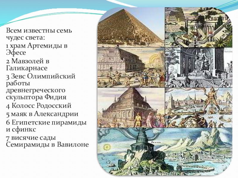 Слайд 20Всем известны семь чудес света: