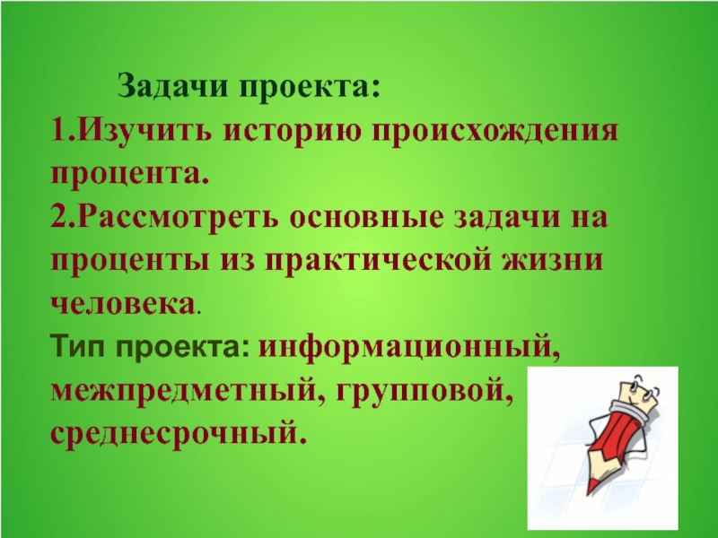 1.Изучить историю происхождения процента.