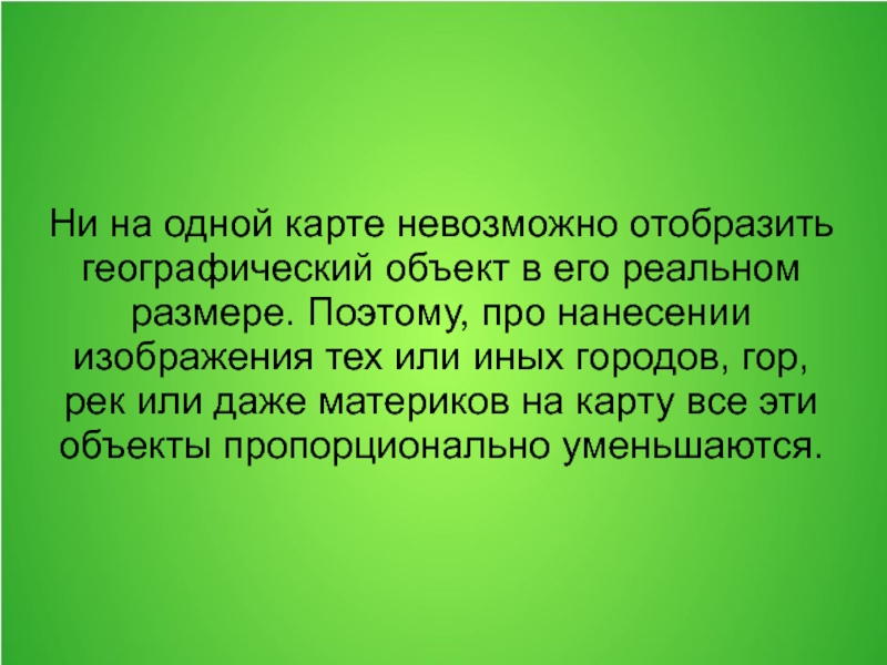 Слайд 7Ни на одной карте невозможно отобразить географический объект в его реальном