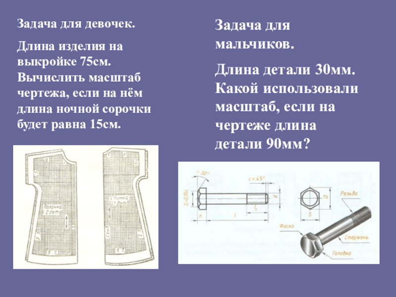 Длина детали 30мм. Какой использовали масштаб, если на чертеже длина детали 90мм?