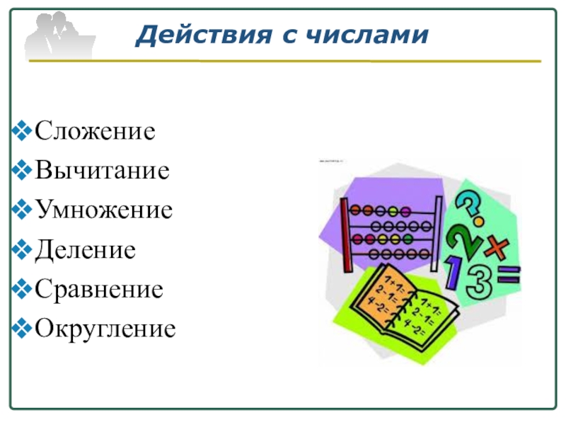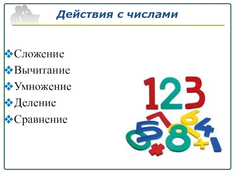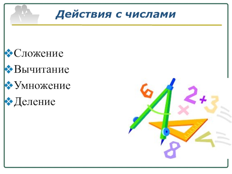 Действия с числамиСложение ВычитаниеУмножениеДеление