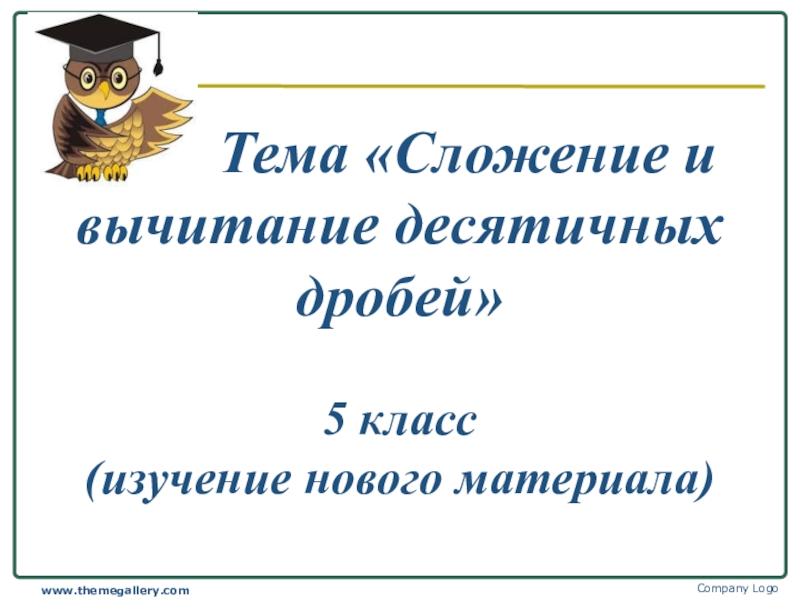 Company Logowww.themegallery.com     Тема «Сложение и вычитание десятичных дробей»   5 класс (изучение