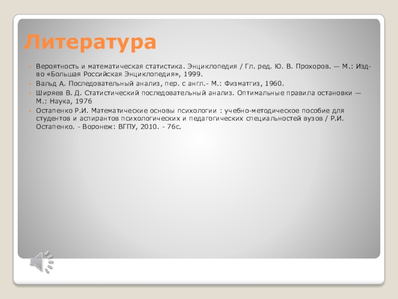 Вальд А. Последовательный анализ, пер. с англ.- М.: Физматгиз, 1960.