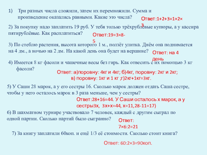 3) По стеблю растения, высота которого 1 м., ползёт улитка. Днём она поднимается