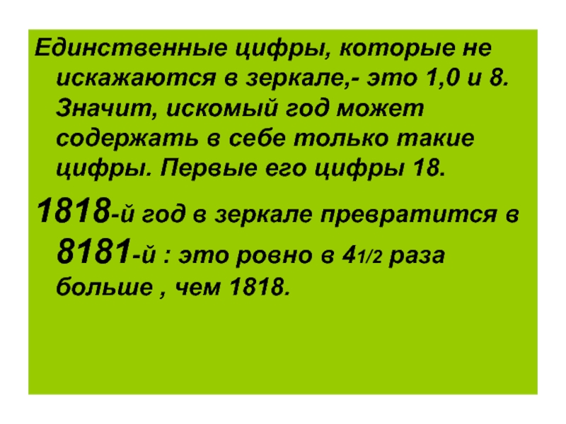 1818-й год в зеркале превратится в 8181-й : это ровно в 41/2 раза больше , чем 1818.