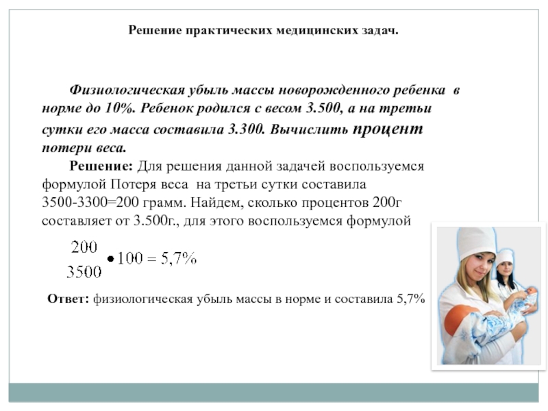 Ответ: физиологическая убыль массы в норме и составила 5,7%
